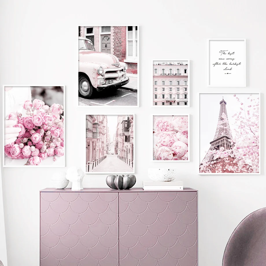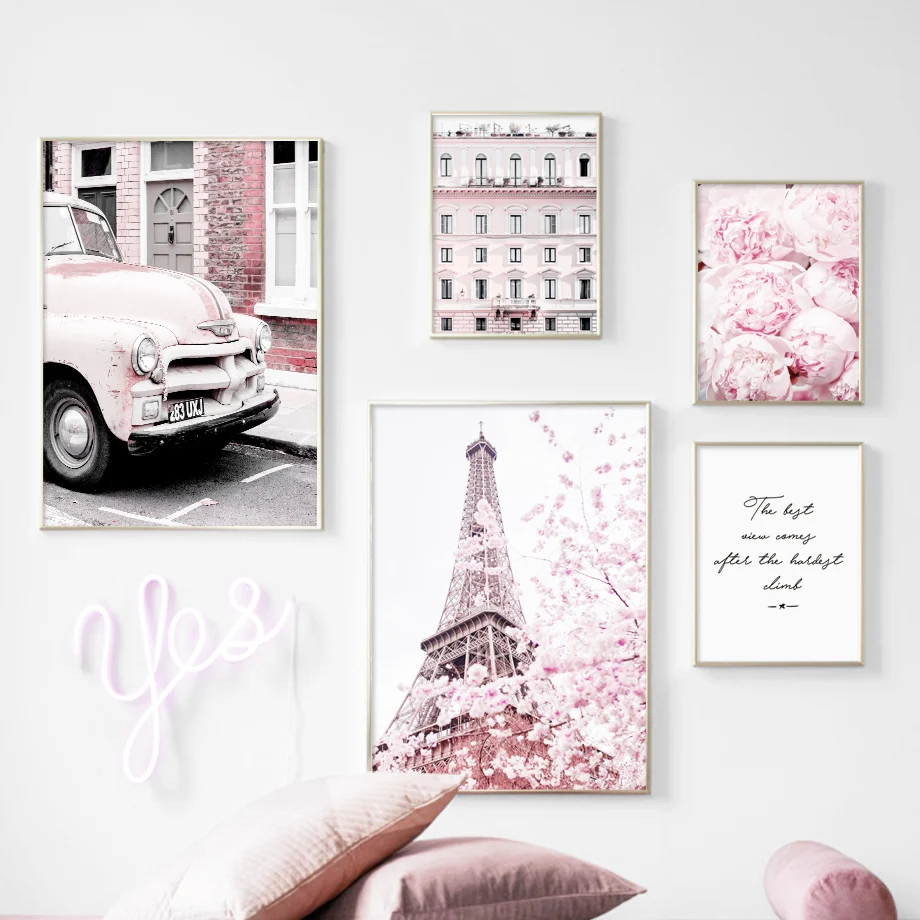 Настенная картина розовая башня Парижа, постеры с пионами в скандинавском стиле для домашнего декора