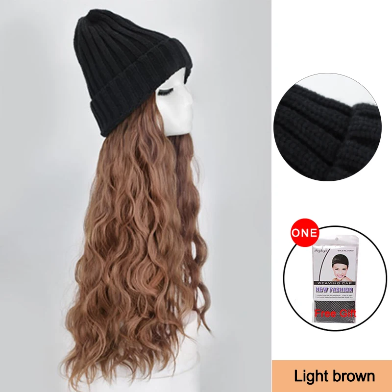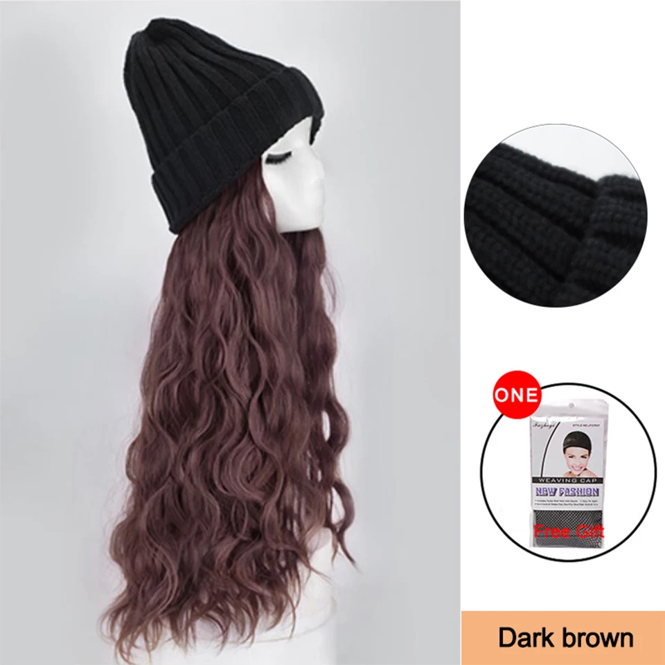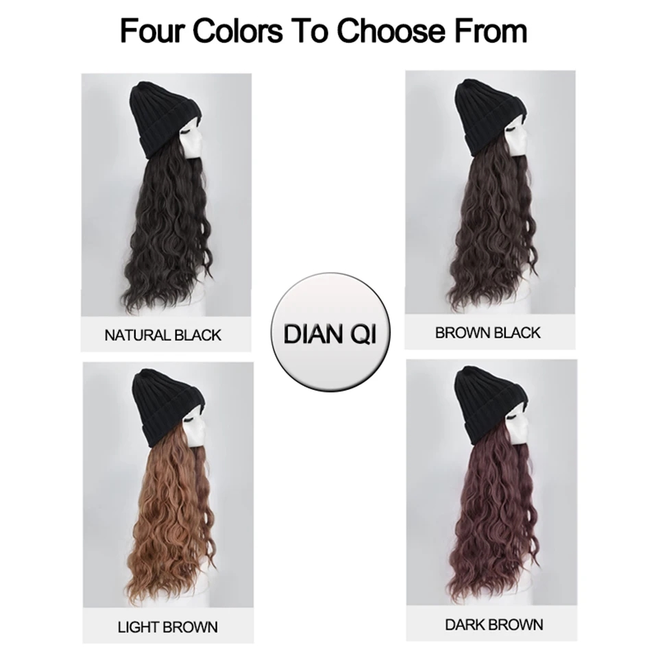 DIANQI 24 дюйма длинный волнистый вязаный парик для шляпы черный коричневый парик и шляпа натуральное соединение синтетический женский парик