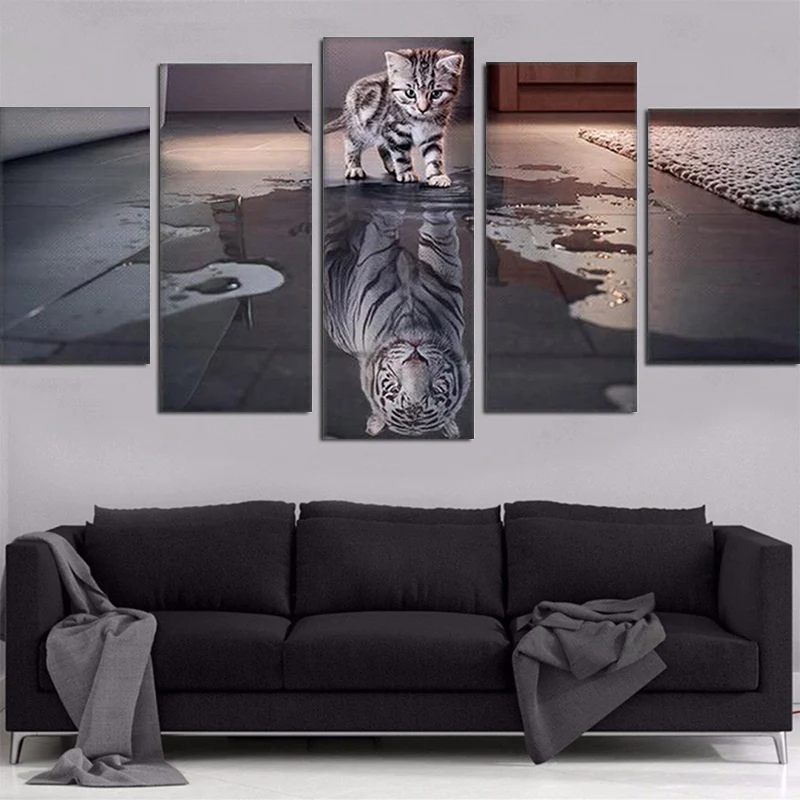 5 панелей животных Кот тигр зеркало для воды модульные картины плак...