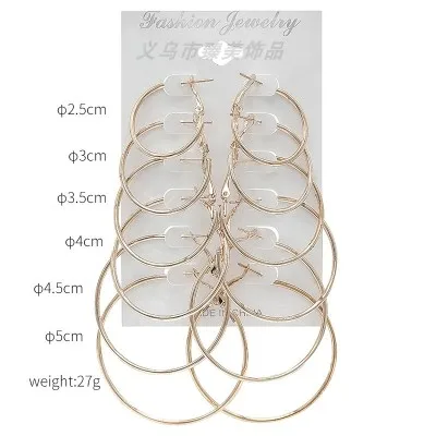 Модные металлические серьги-кольца, большие и маленькие 6 пар в ком...