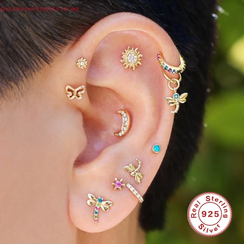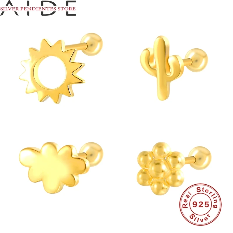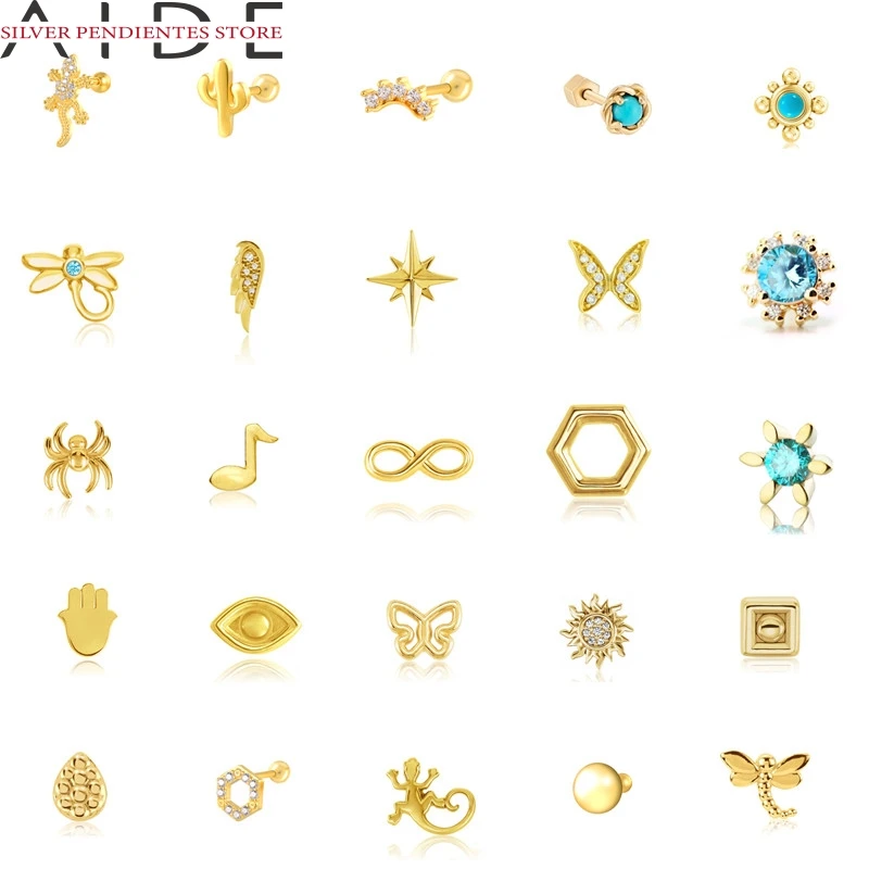 Женские серьги-гвоздики с перфорированным хрящом AIDE, 1 шт., 925 пробы, серебристые, бирюзовые, геометрические, несимметричные, с животными, Joyero