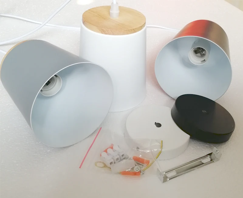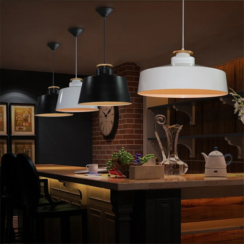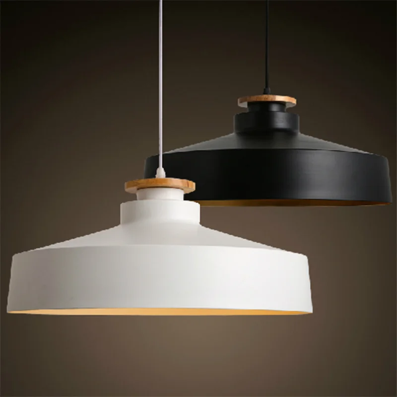 Подвесные лампы E27 в стиле лофт, алюминиевый деревянный абажур, лампы черного и белого матового цвета для бара, кафе, ресторана, осветительные приборы