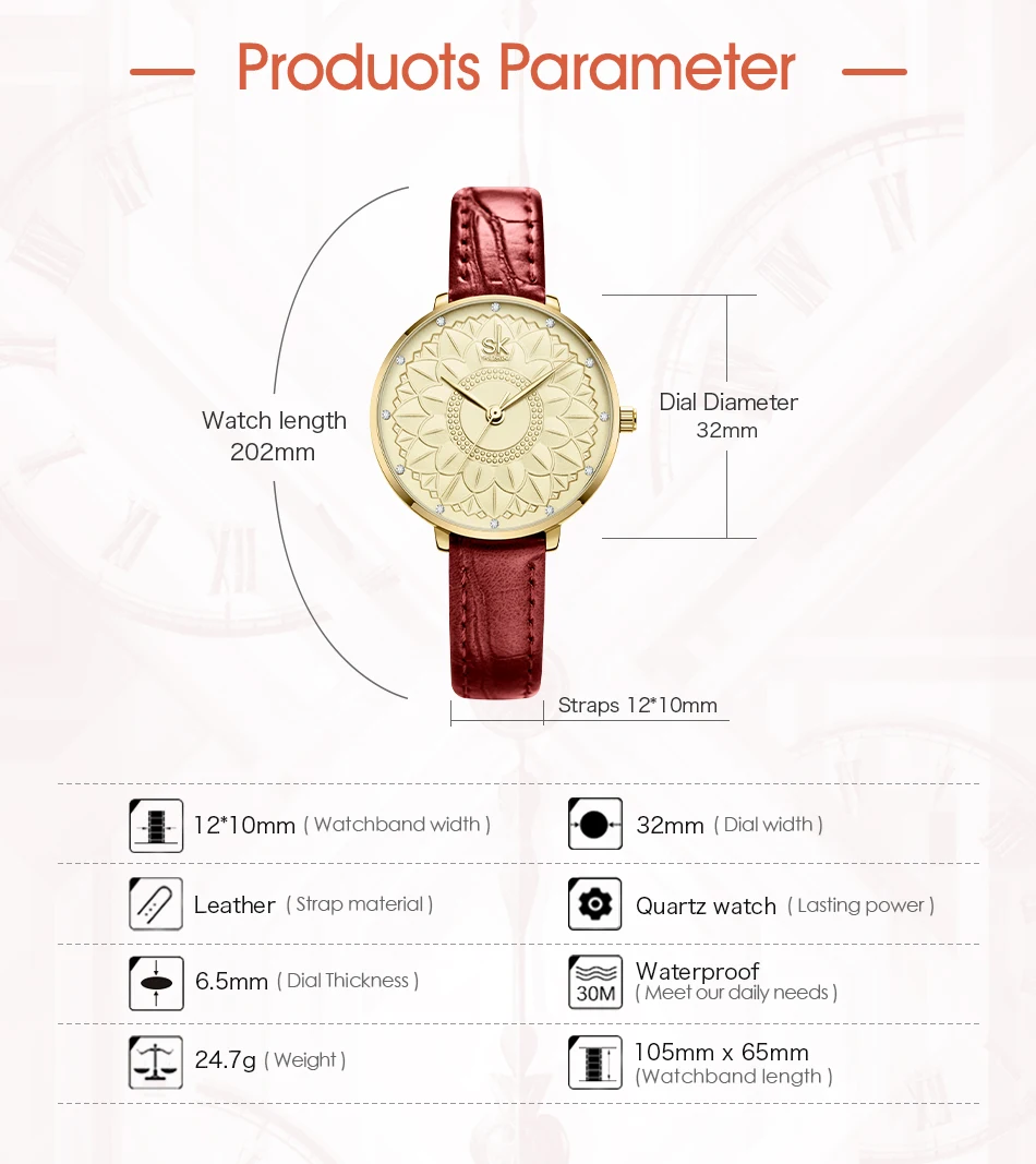 Женские кварцевые часы Shengke, с романтичным красным ремешком и цв...