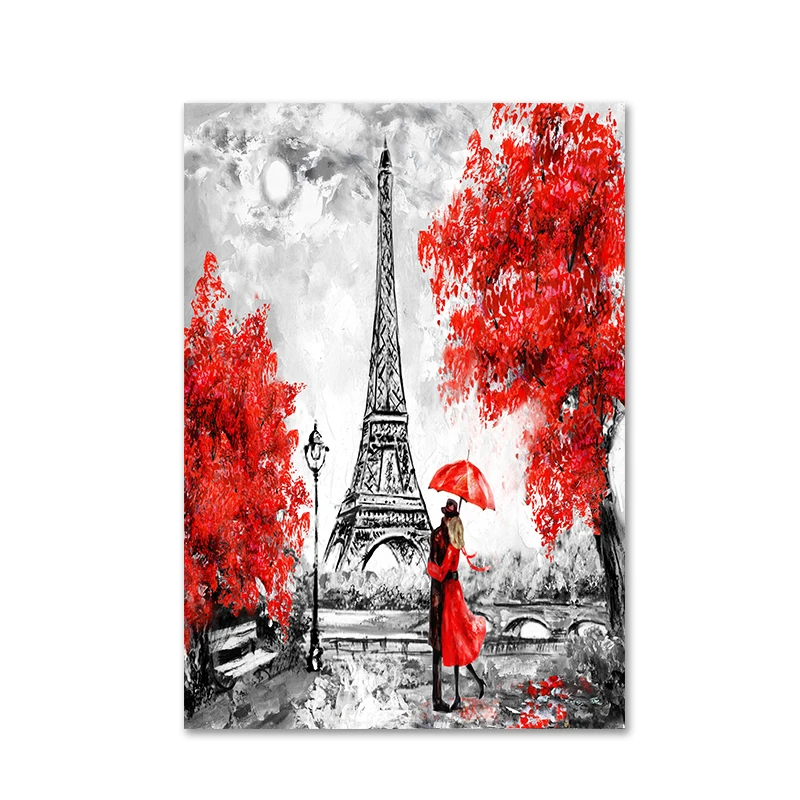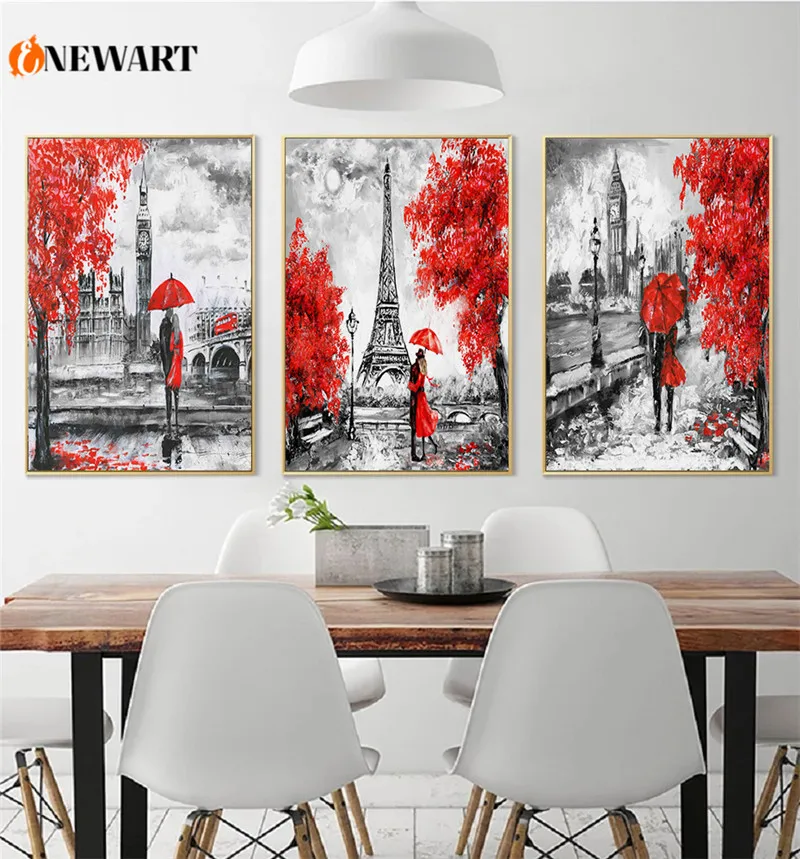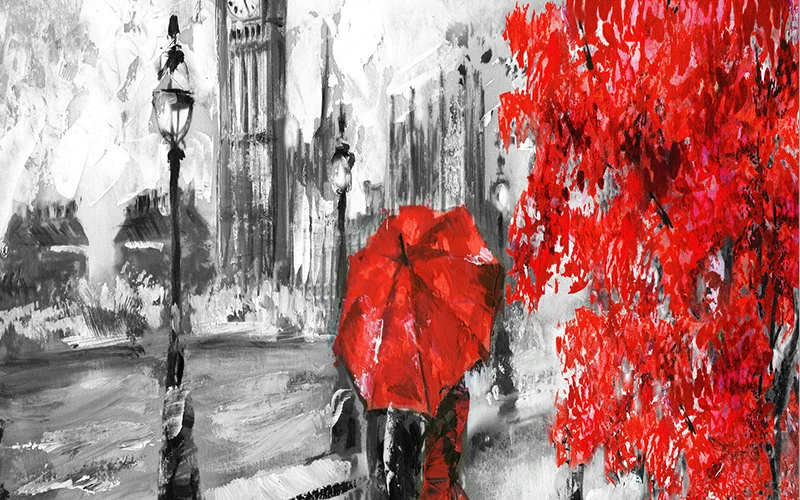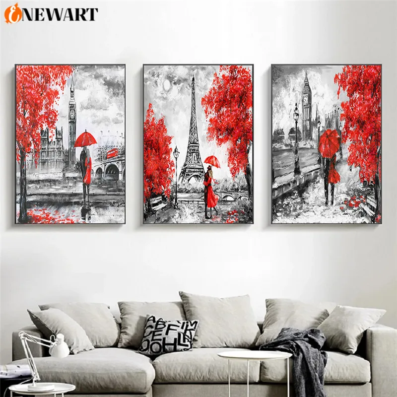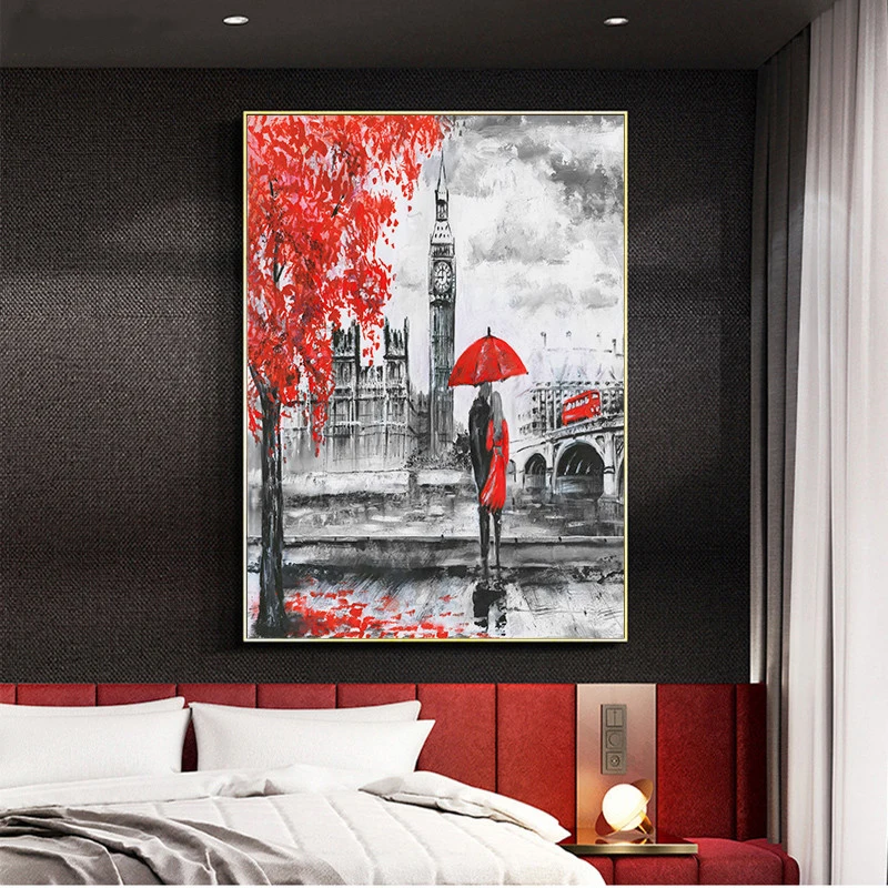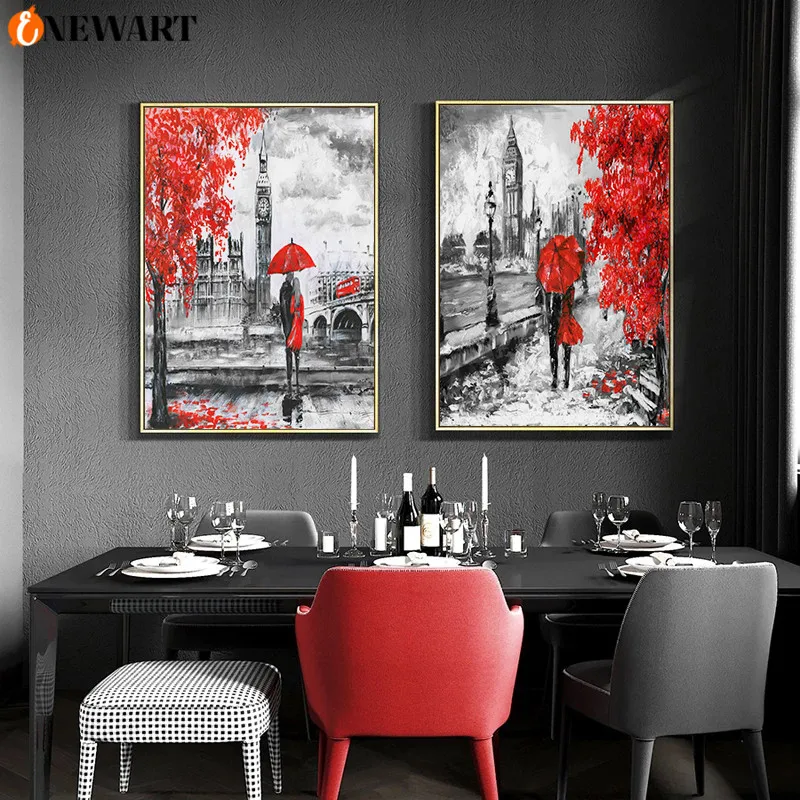Красная абстрактная картина на холсте современный город Лондон настенное искусство Черный Белый настенный постер с зонтом цветочное украшение картина домашний декор