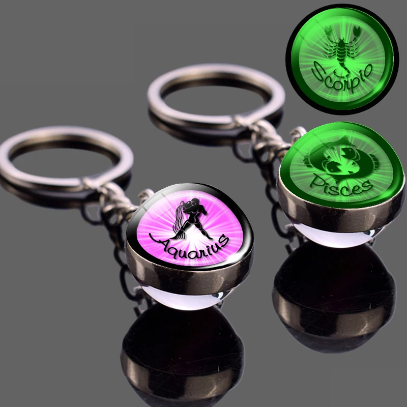 12 Созвездие светящийся брелок стеклянный шар кулон зодиакальный бр...
