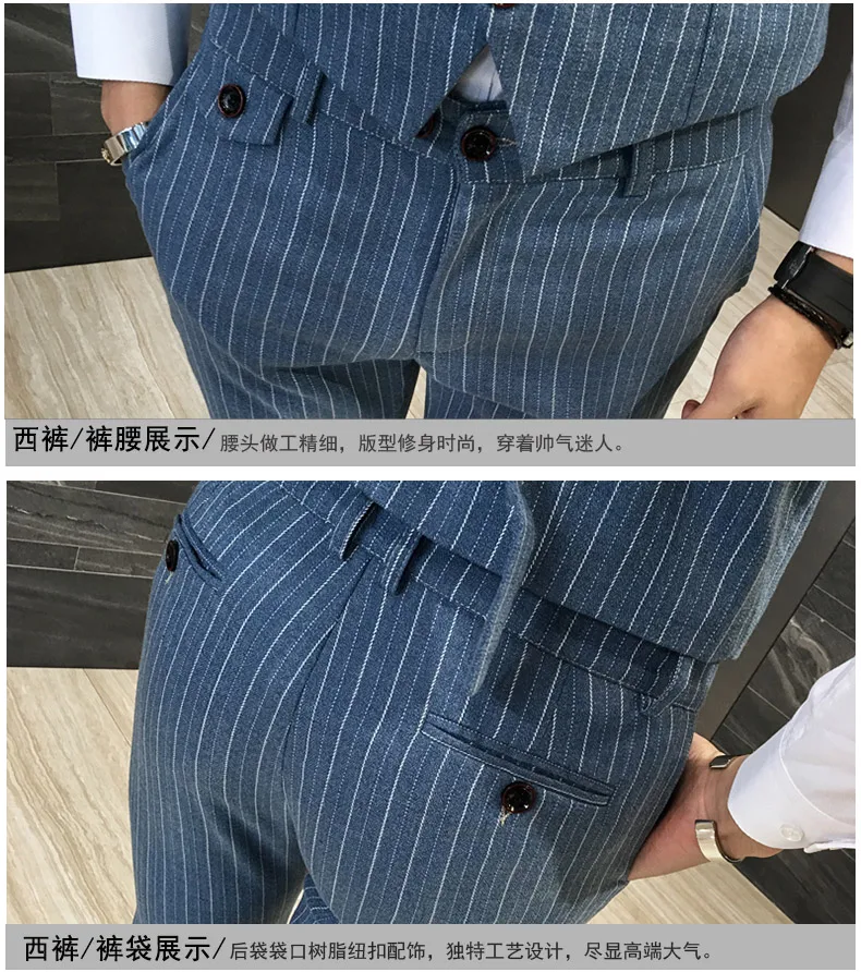 Мужской облегающий деловой костюм в британском стиле из 3 предметов в полоскуВысококачественный модный мужской блейзер, жилет и брюки