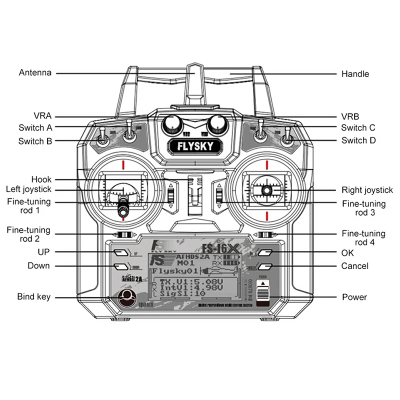 Каналы: 6-10 (по умолчанию 6)Тип модели: фиксированное крыло/планер/вертолетДиапазон RF: 2,408-2,475 ГГцМощность RF: <20dBmРадиочастотный канал: 135Полоса пропускания: 500 кГц2,4 ГГц система: AFHDS 2A / AFHDSТип модуляции: GFSKРазрешение ручки: 4096Предупреждение о низком уровне напряжения по уровню поверхности: <4,2 VПорт DSC: порт PS/2Заряжаемый: нетДлина антенны: 26 мм (двойная антенна)Вес: около 400 гПитание: 4 * AA батареи (не входят в комплект)Дисплей: прозрачный дисплей STN, ЖК-экран 128*64, VA 73*39 мм, ЖК-дисплей с белой подсветкойРазмер: 190*174*89 ммОнлайн обновление: ДаЦвет: черныйСертификат: CE0678, FCC ID: N4ZFLYSKYI6X