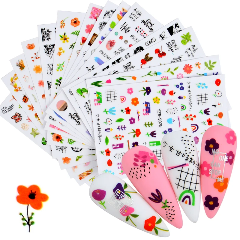 1 лист наклейки для ногтей абстрактные женские наклейки для лица Цветы лист осень весна Украшение Маникюр слайдеры День Святого Валентина дизайн ногтей