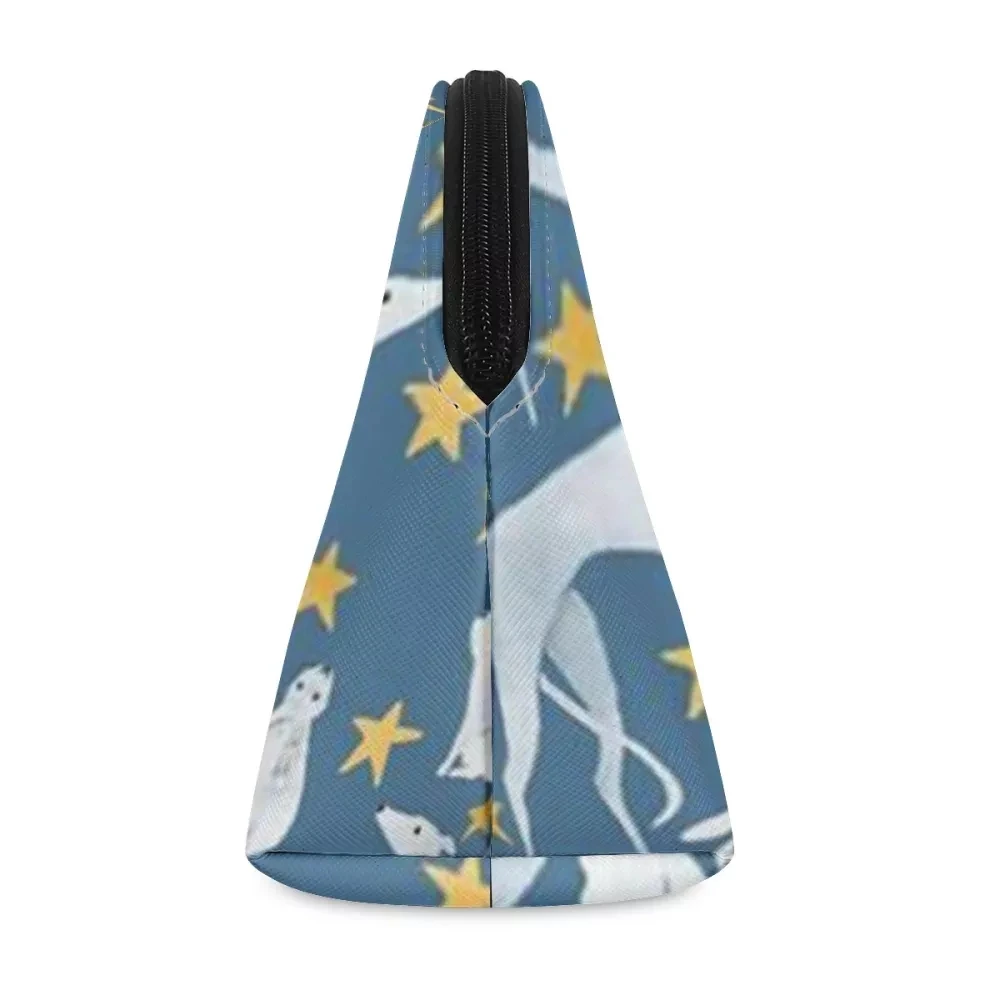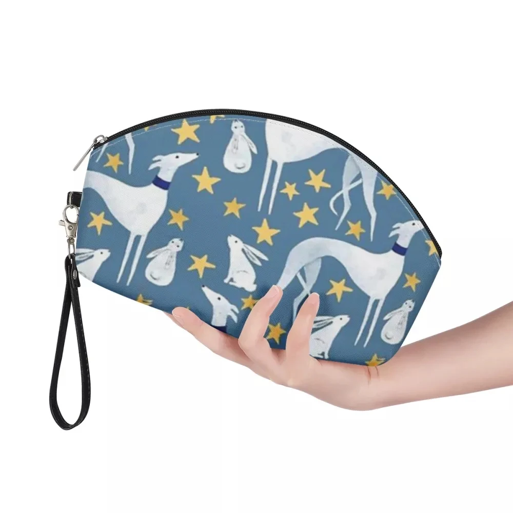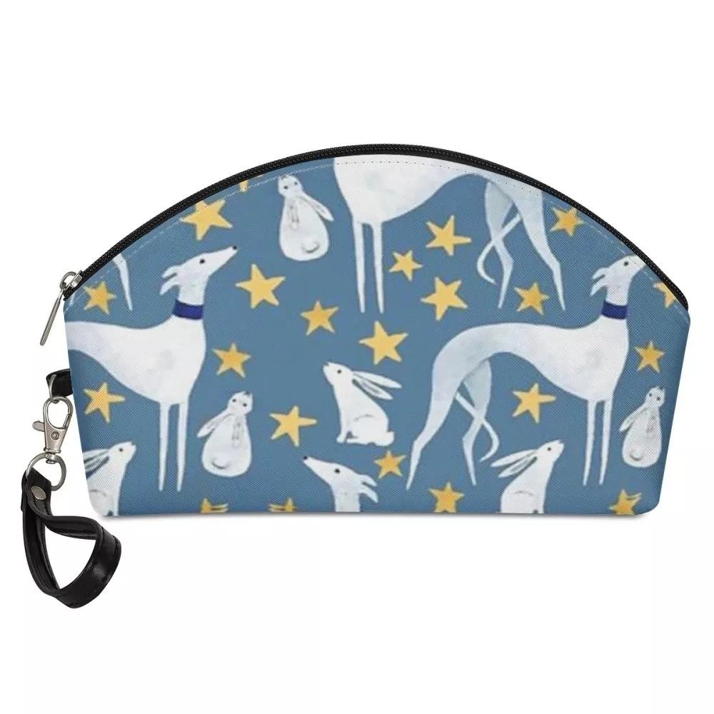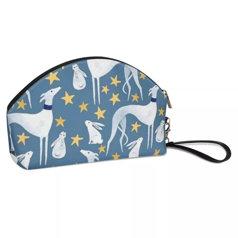 Заяц и звезды, женская кожаная сумка для макияжа на молнии, дорожная косметичка для макияжа, женская сумочка для макияжа с изображением борзых