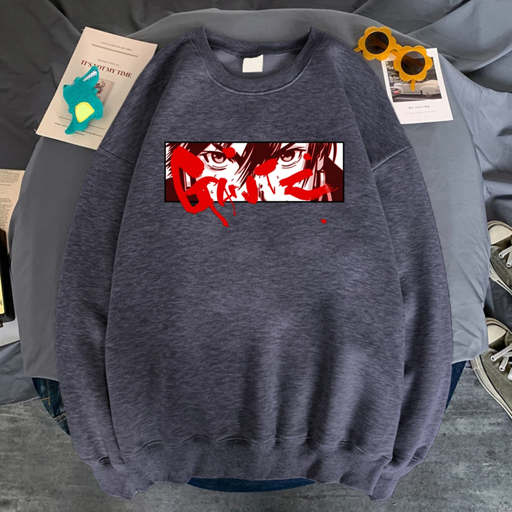 Худи с принтом японского аниме ганца, модные мужские флисовые толстовки, осень 2021, уличная одежда с круглым вырезом и длинным рукавом, мужской пуловер