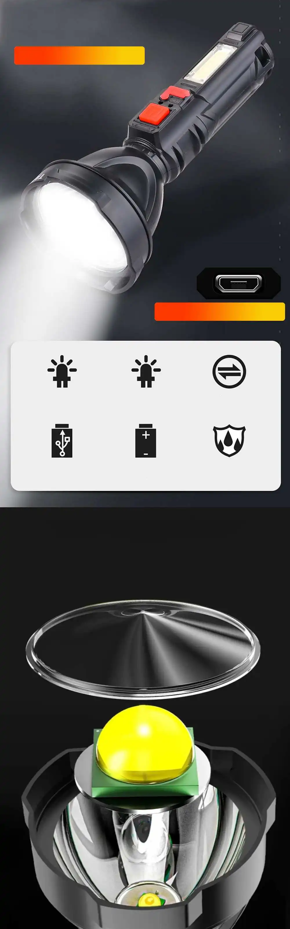 Фонарик XANES с COB матрицей, перезаряжаемый портативный светодиодный фонарь с USB, мощный прожектор для кемпинга, лампа для поиска, 2000 люмен