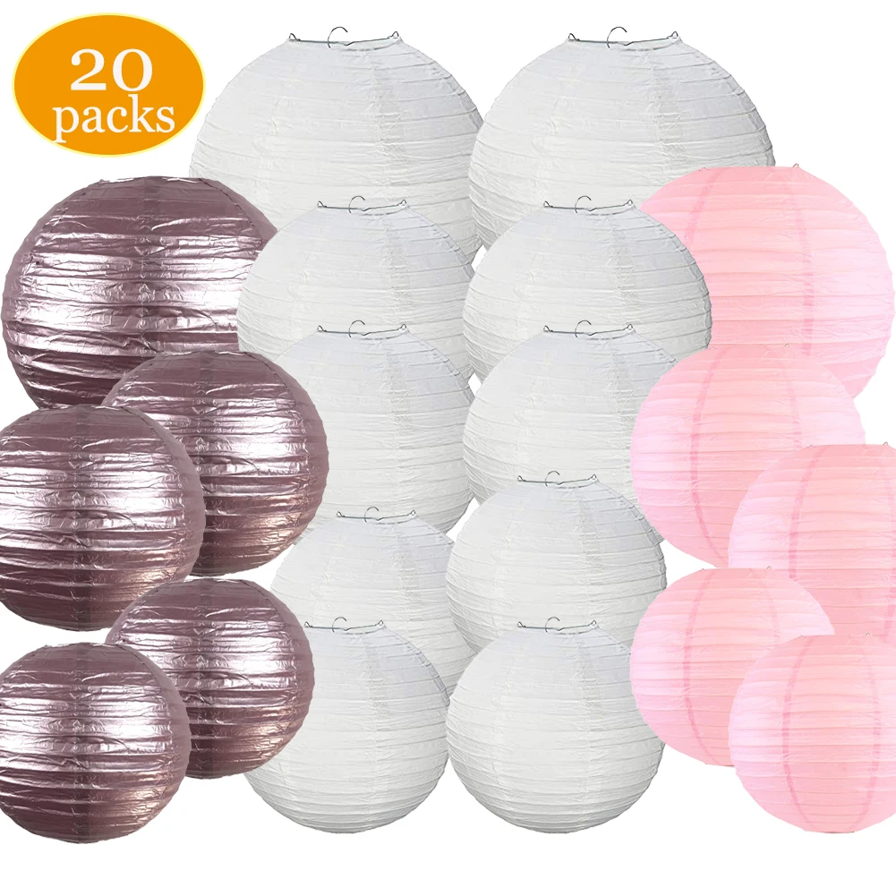 20 шт. Китайский Японский бумажный фонарь 8 "10" 12 "белый светильник розовый розовое золото Diy papier lampion для свадьбы подвесные украшения для вечеринки