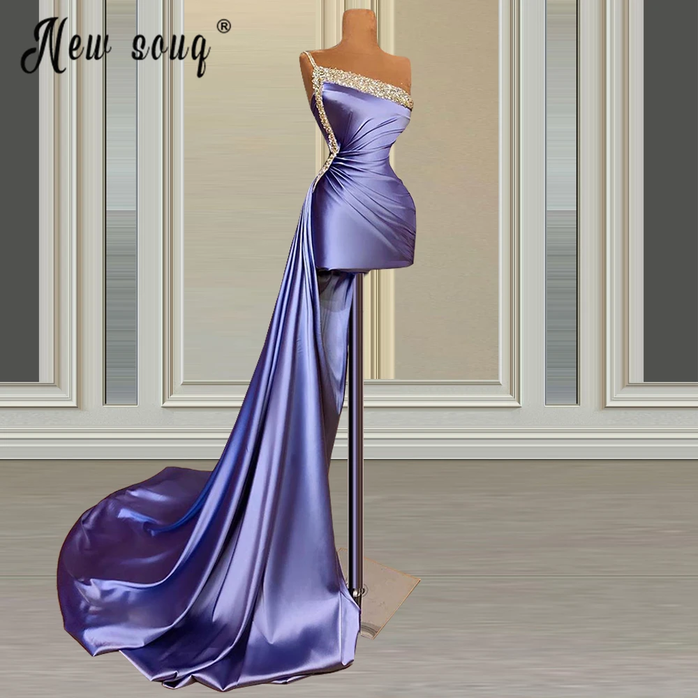 Дубай фиолетовый Спагетти ремни вечернее платье 2021 Съемный Поезд Формальные платья выпускного вечера для знаменитостей Longue халаты пышные платья