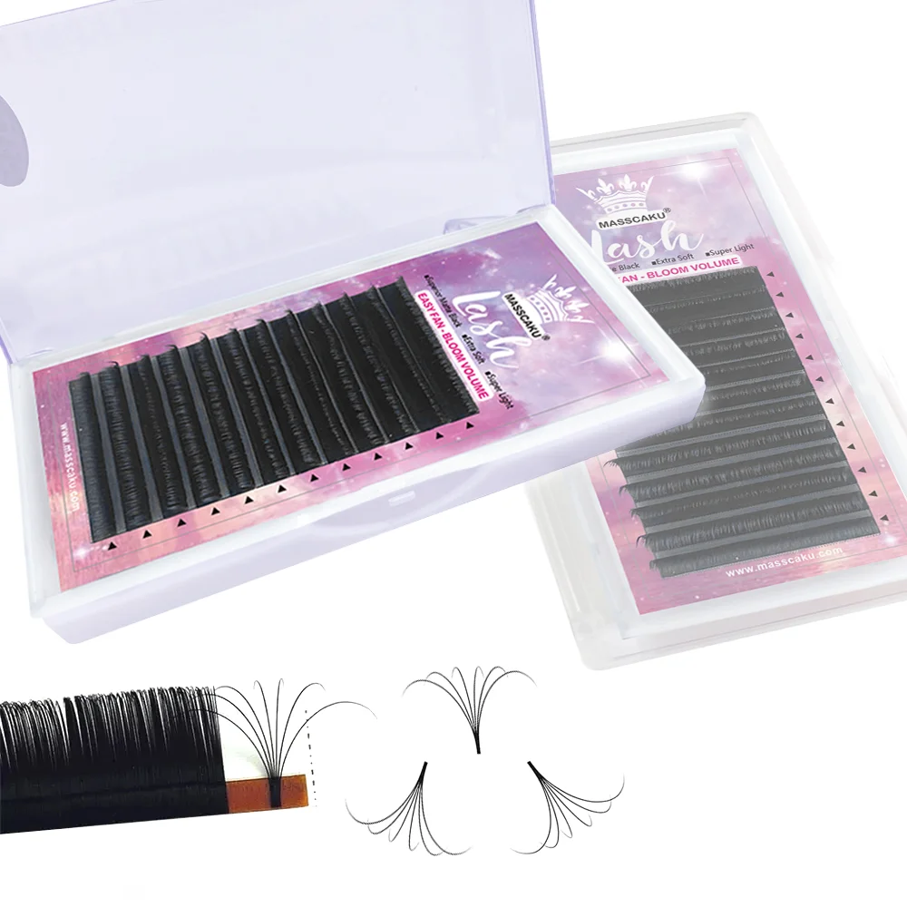 MASSCAKU легкое удлинение ресниц 0,05 0,07 0.10 толщина супер мягкие Авто цветущие ресницы DIY 2d 3d 4d ~ 10d ресницы