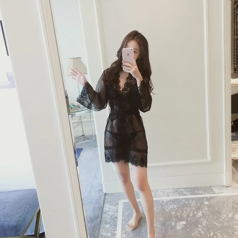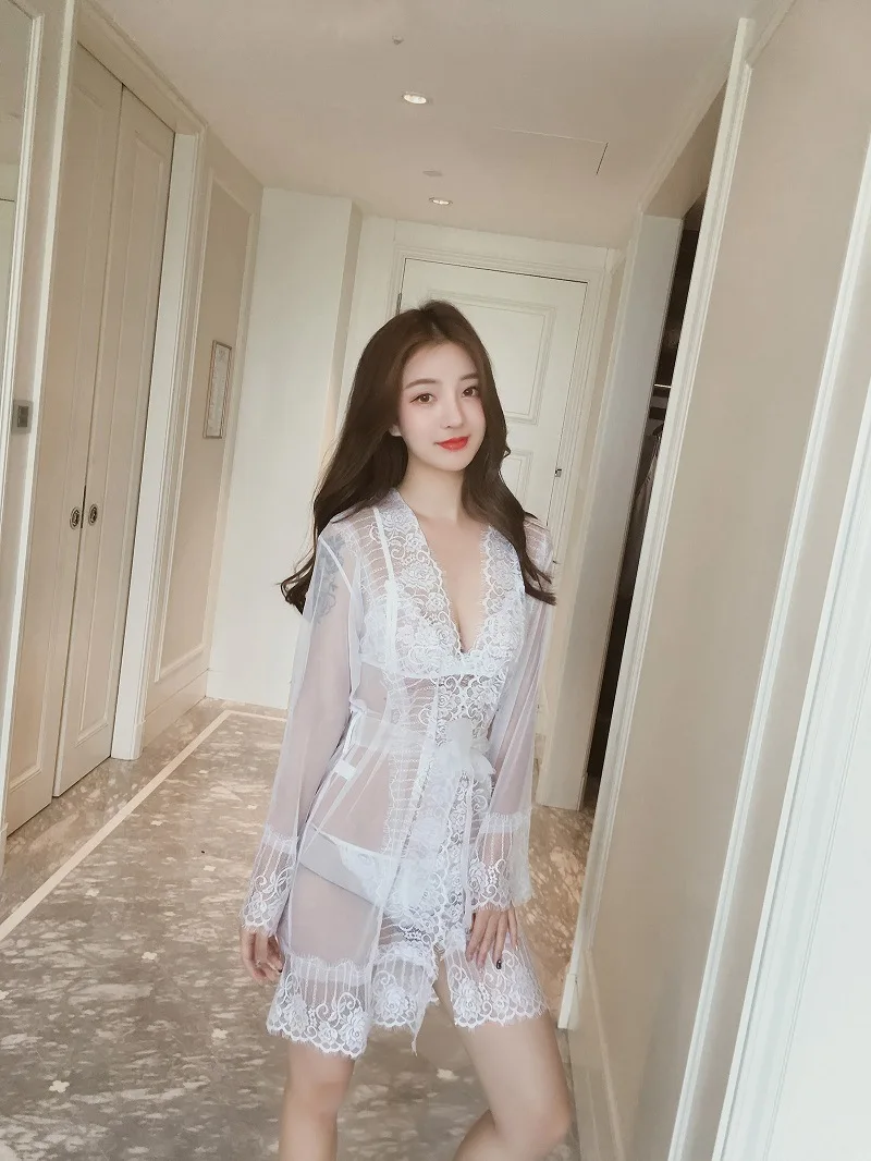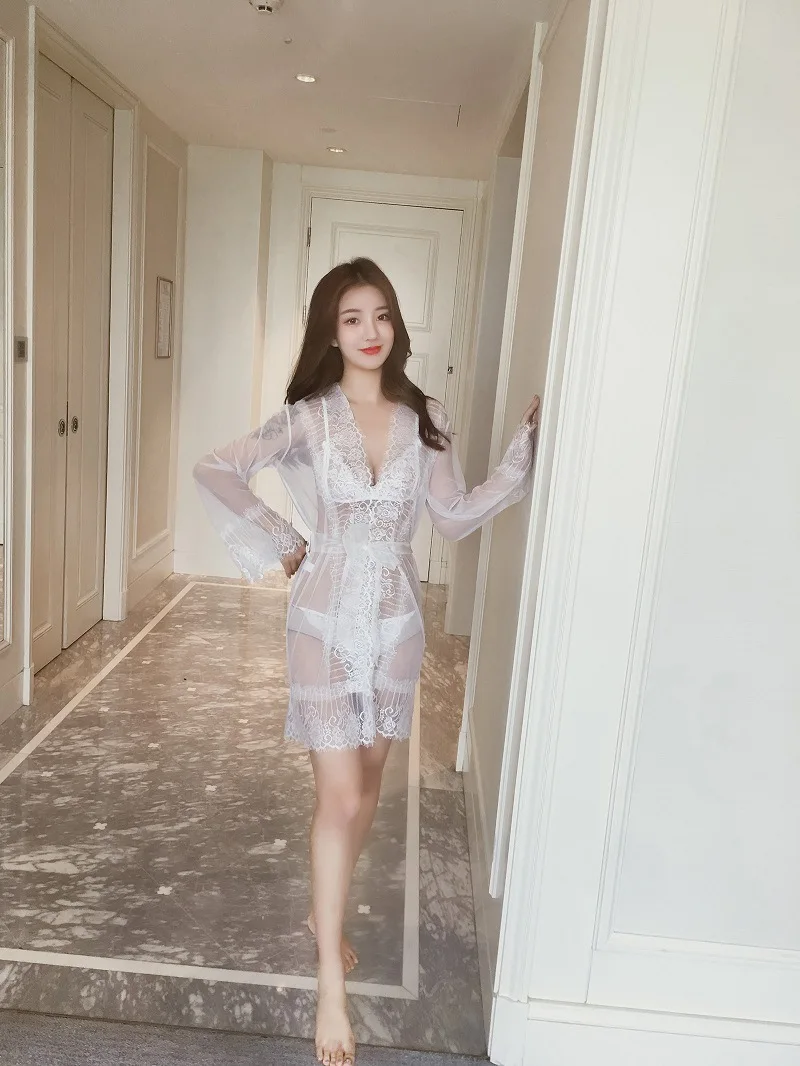 Пикантное нижнее белье с длинным рукавом, кружевной халат, сексуаль...