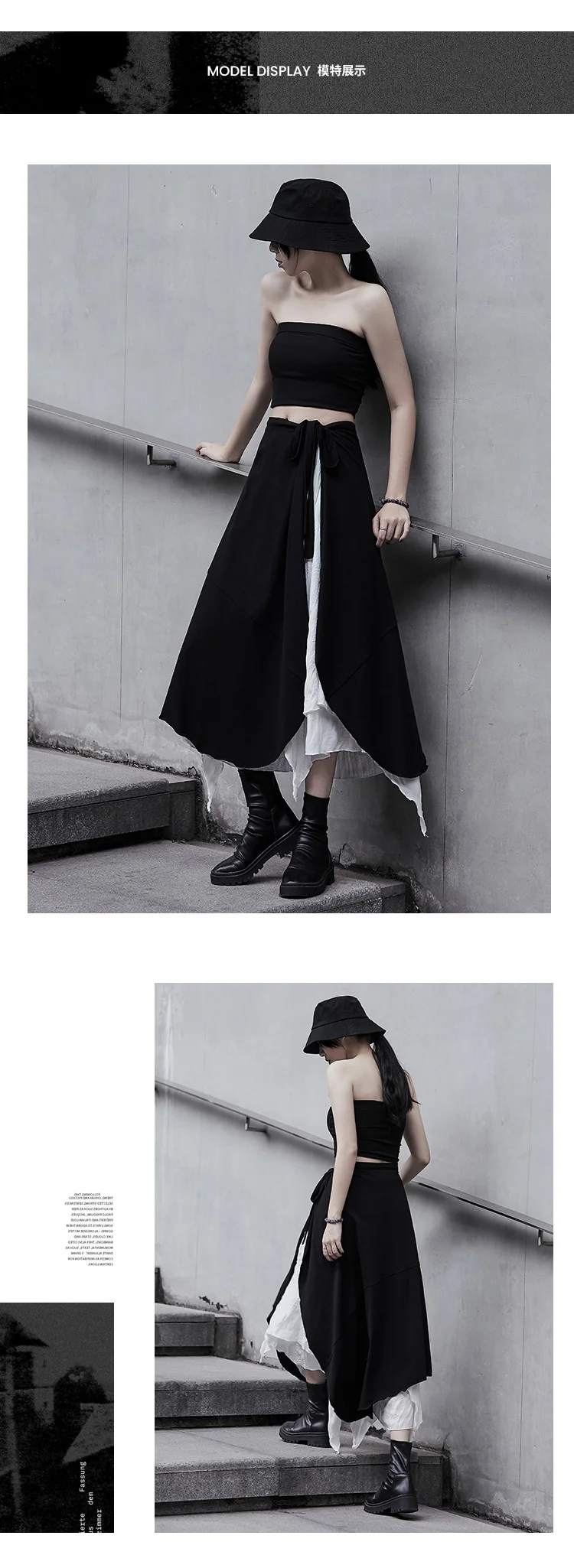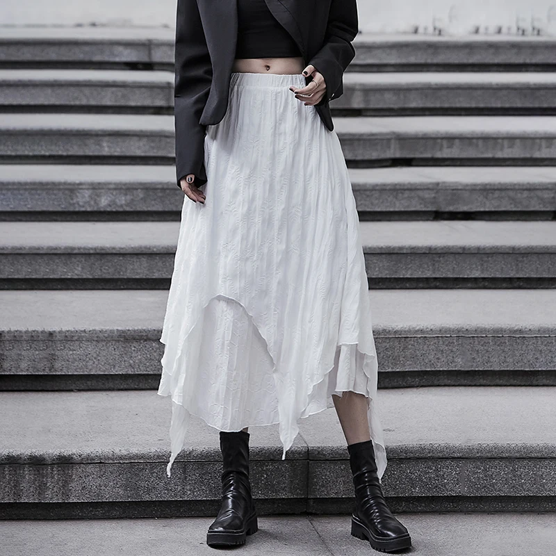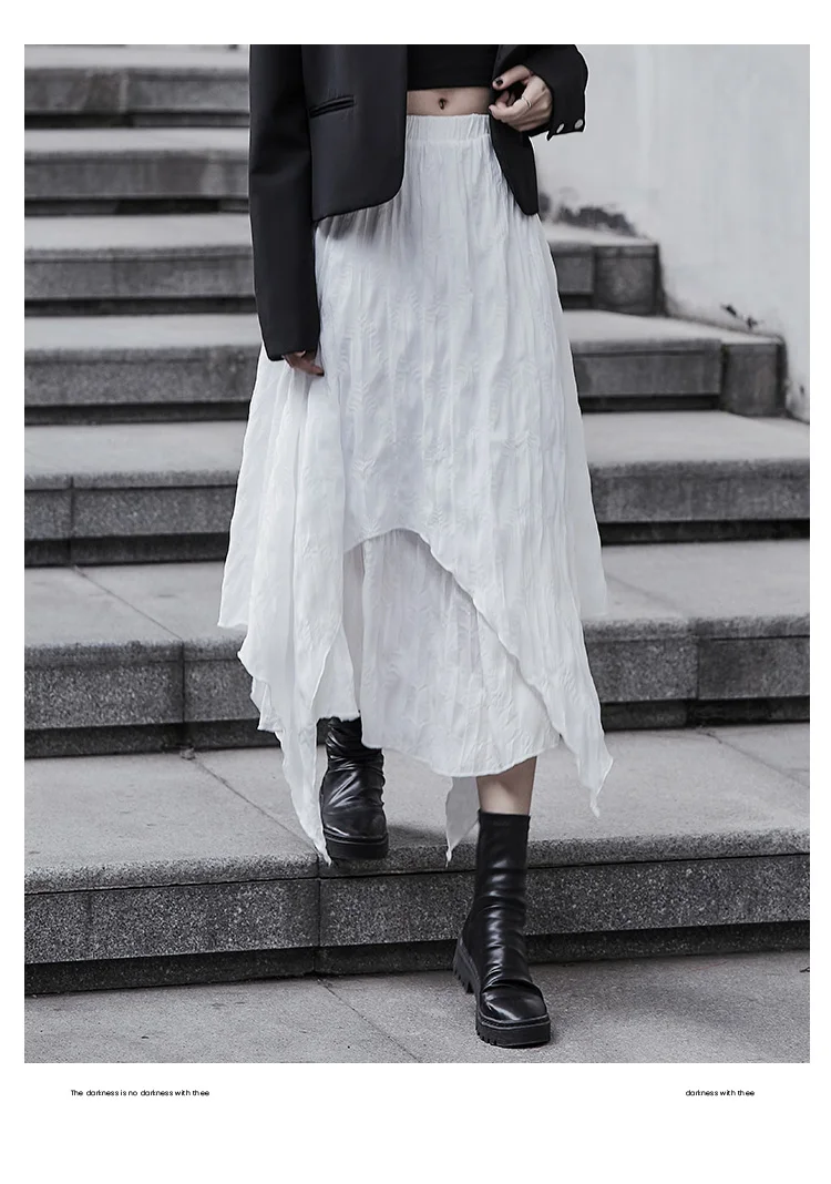 SHENGPALAE Асимметричная черно-белая юбка из двух частей с высокой талией Женская Весенняя Новинка 2021, юбка до середины икры на шнуровке с высокой талией 5B565