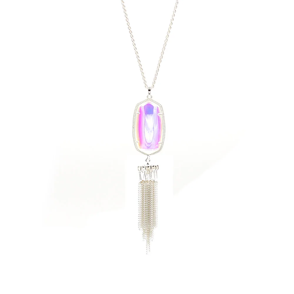 Большой овальной формы кошачий глаз смолы камень с коготь длинный металлическая подвеска с кисточкой Цепочки и ожерелья