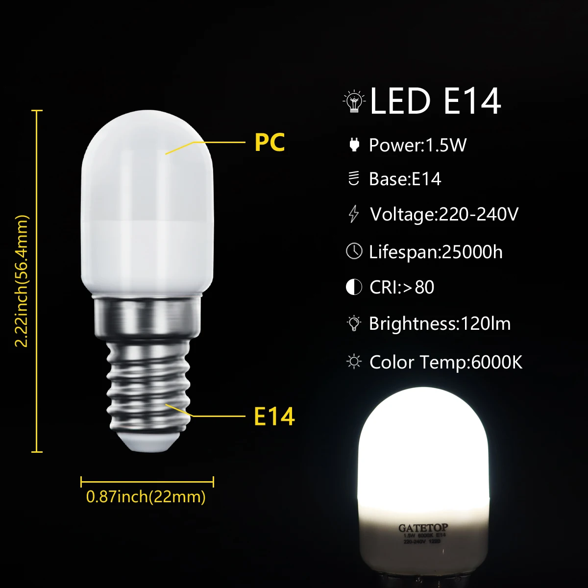 Миниатюрная Светодиодная лампа для парфюма на холодильник, E14, 1,5 Вт, 230 В, Smd2835, 6000k, лампа для холодильника, сменная лампа для домашнего использования