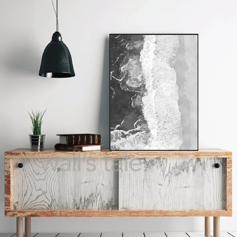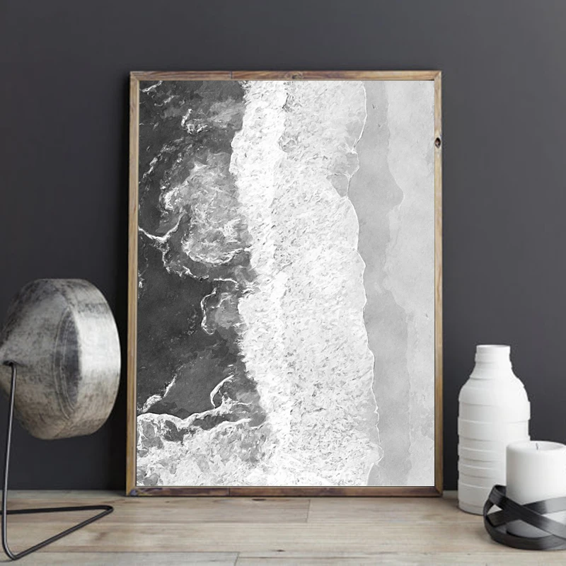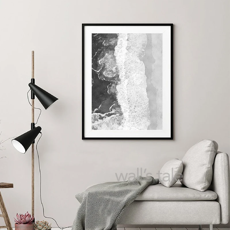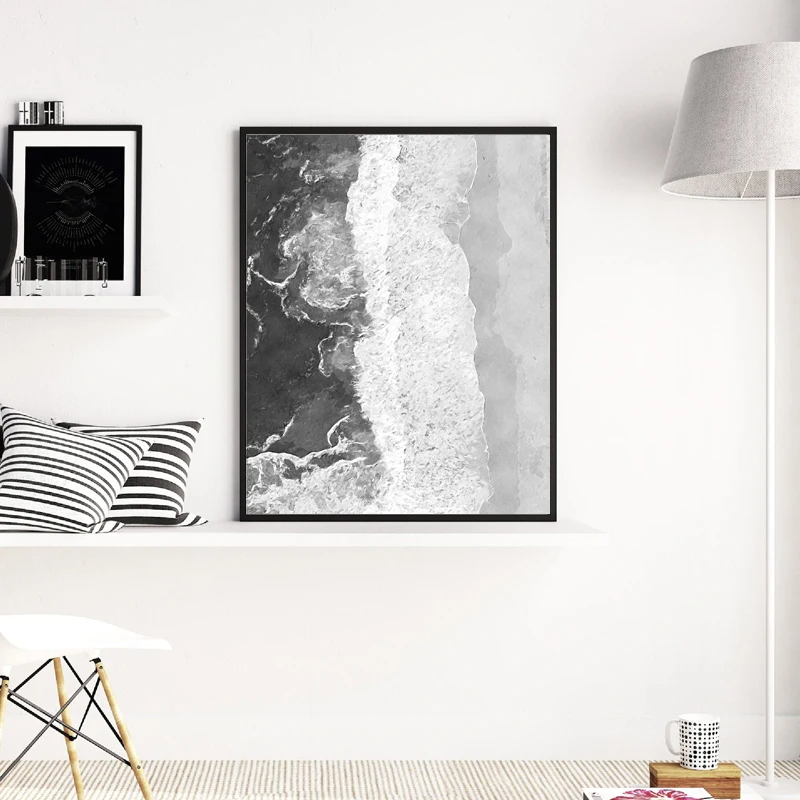 Плакат для фотосъемки с изображением воздушного океана, пляжа, черно-белого цвета, Картина на холсте, украшение для дома