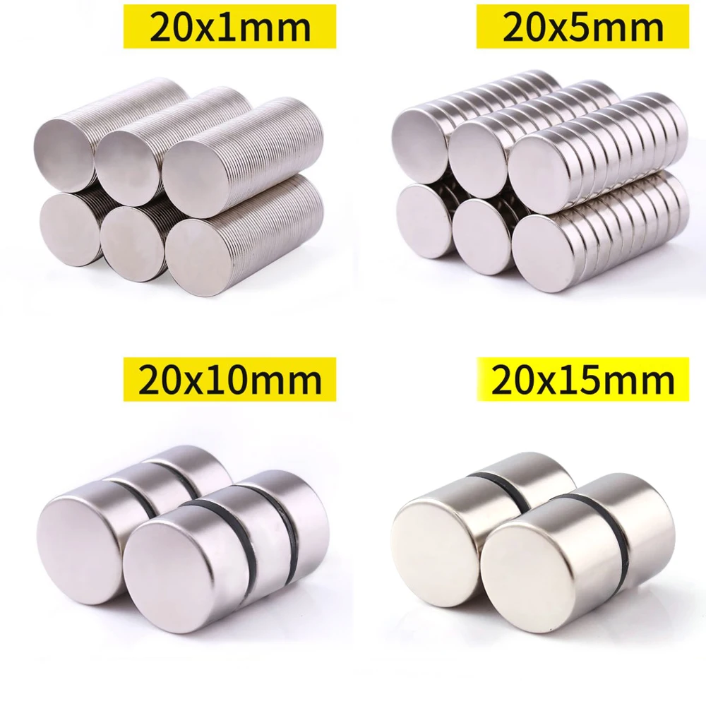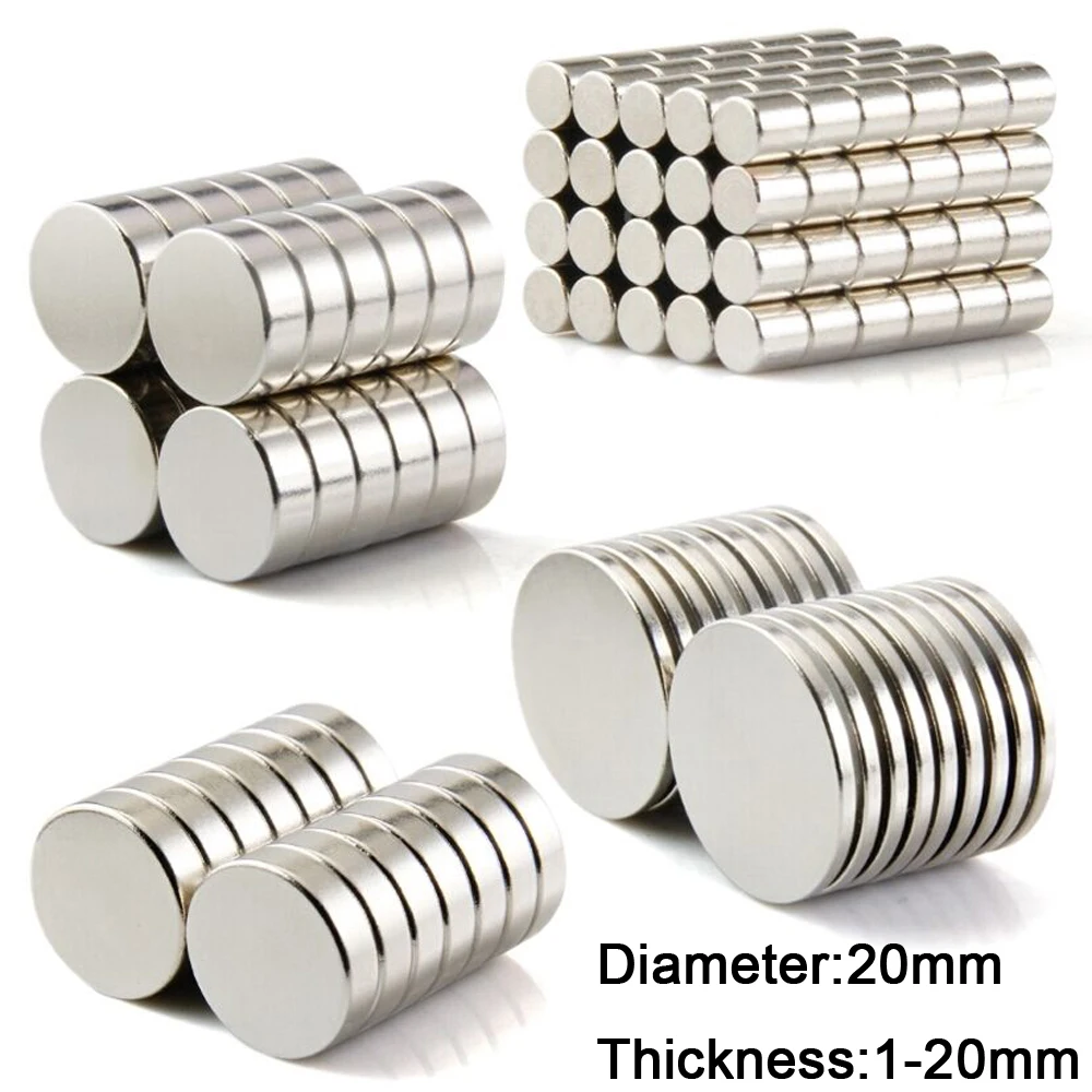 Круглые редкоземельные магниты N35, 10 шт., диаметр 20 мм, толщина 11, 5234568101520 мм