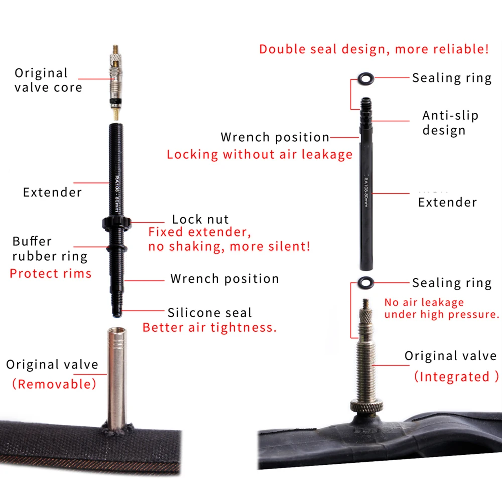 Съемный интегрированный ключ для велосипеда, детали Presta удлинитель клапана, внутренние трубки, удлинитель клапана, Аксессуары для велосипеда, 45 мм, 80 мм