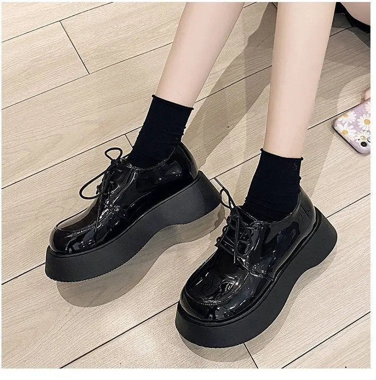 Kawaii/обувь в стиле Лолиты; Обувь на не сужающемся книзу массивном каблуке; Женские туфли-лодочки; Обувь из лакированной кожи на платформе; Женские туфли Mary Jane с круглым носком; Harajuku