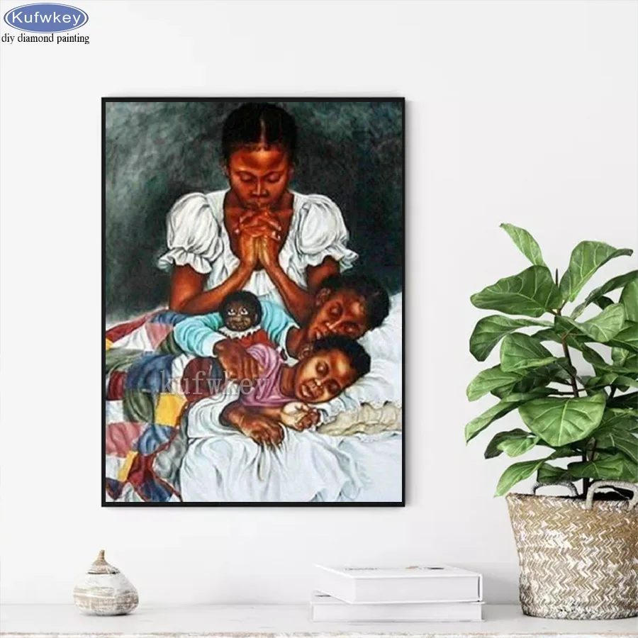 Африканская женская и детская семейная Алмазная картина 5D алмазная вышивка Diy подарок ручной работы полный квадратный сверлильный Набор для вышивки крестом Декор