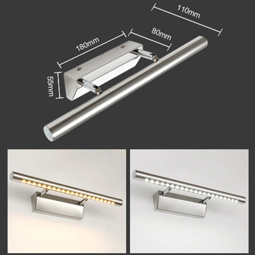 Новый настенный светильник из нержавеющей стали для ванной комнаты, 5 Вт, 85-265 В переменного тока, для макияжа, шкафа, зеркала, фотографий, передняя лампа для туалетного столика с креплением