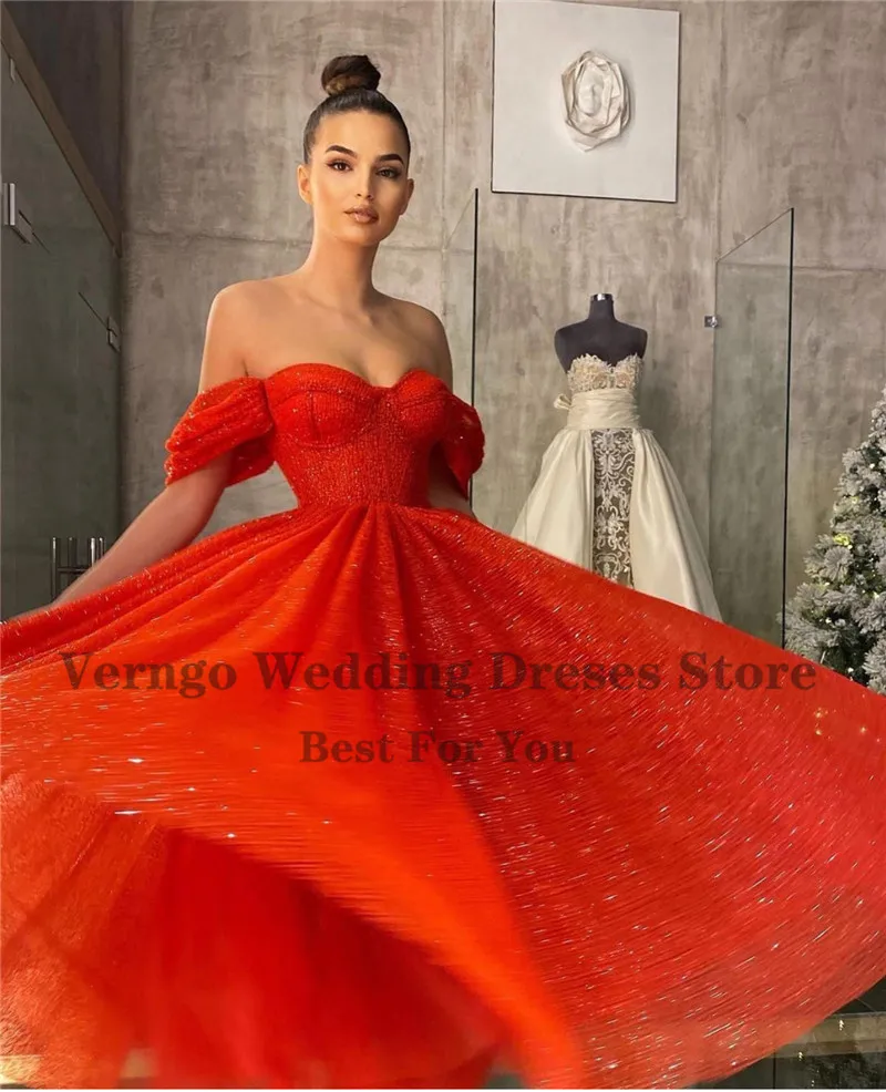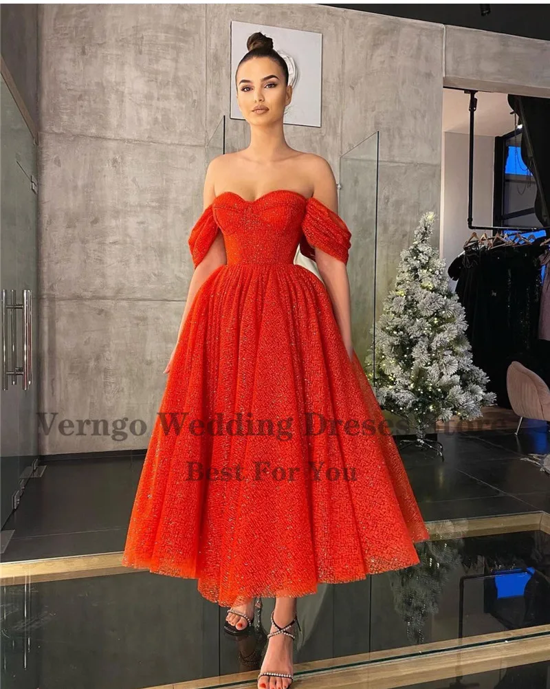 Красные блестящие трапециевидные короткие платья Verngo 2021 для свадебного торжества, приема, с открытыми плечами и короткими рукавами, вечерние платья длиной ниже колена