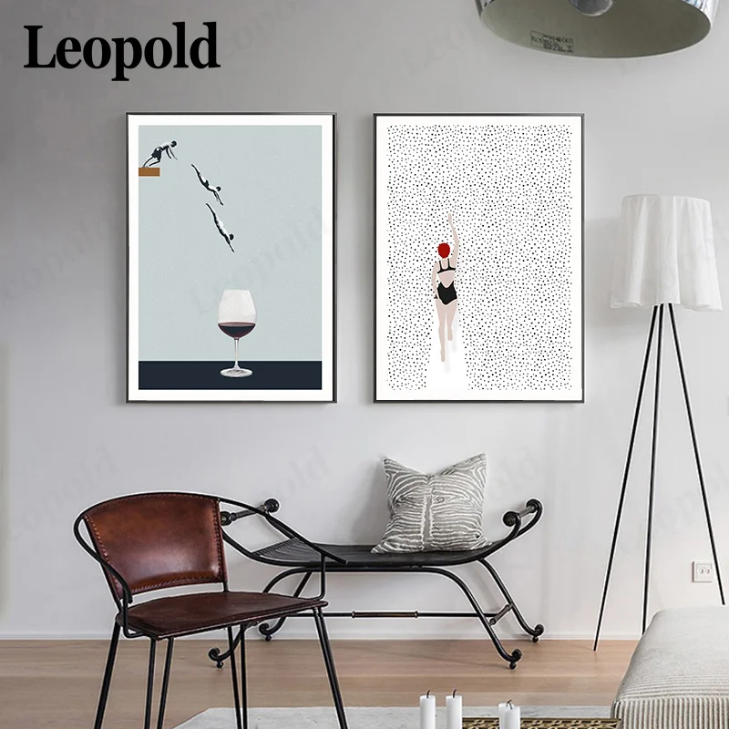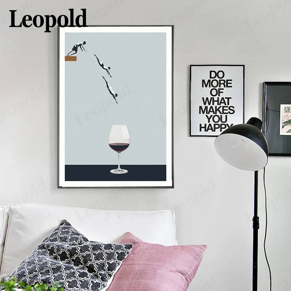 Nordic светильник Цвет абстрактная живопись плакат злодей плавательный прыгать в вино Стекло настенная живопись искусство Гостиная украшения