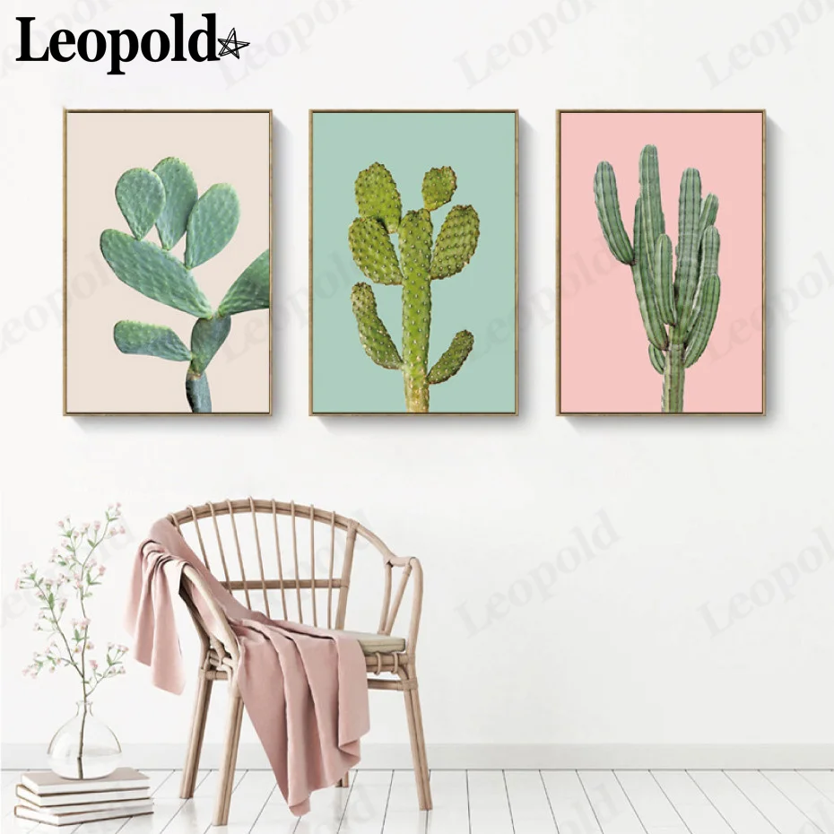 Современный холщовый постер с зеленым КАКТУСОМ, Простой Настенный п...