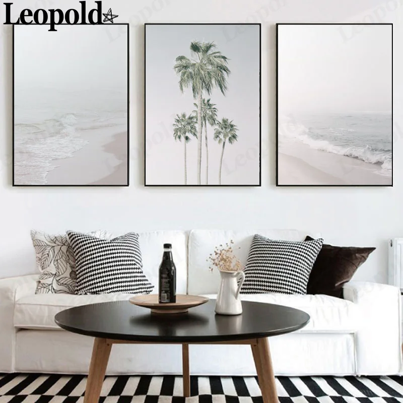 Современный минималистский плакат пейзаж холст плакат кокосовое дерево волна пляж плакат...