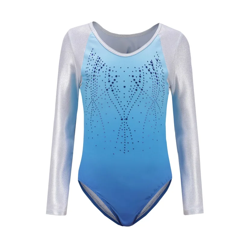 Женский балетный гимнастический костюм, танцевальный костюм с длинным рукавом и бриллиантовым рисунком
