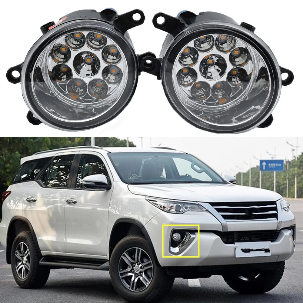 Противотуманные фары H11, светодиодные, дневные ходовые светильник ни, дневные ходовые огни, белого и желтого цветов, для Toyota Fortuner 2015, 2016, 2017, галогенные лампы, 1 пара