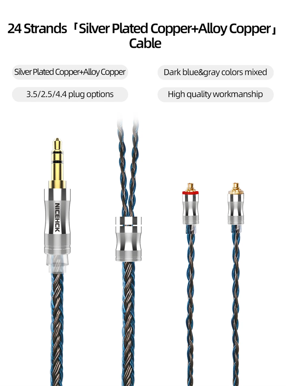 NICEHCK C24-2 24-жильный посеребренный медный сплав кабель для наушников 3,5 мм2,5 мм4,4 мм MMCXNX7QDC0,78 2Pin для ST-10s LZ A7