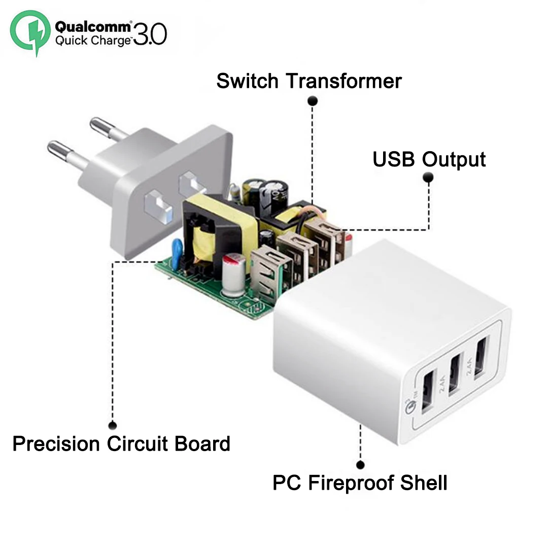 Зарядное устройство с 3 USB-портами для ЕС, быстрая зарядка 3,0 для...