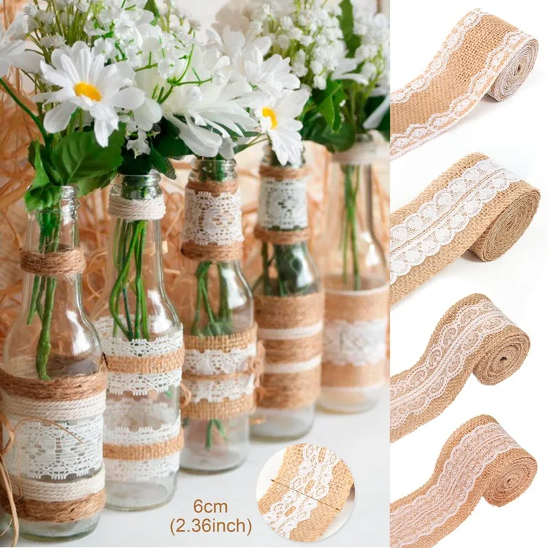 2 м из натурального джута Мешковина мешковиной лентой рулонов винтажные Свадебные украшения в деревенском стиле Рождественский подарок упаковка фестиваль вечерние домашний декор