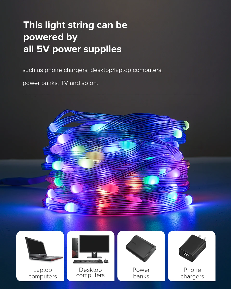 RGB-гирлянда, 5 м, 50 светодисветодиодный, WS2812B, украшение для дня рождения, 5 в постоянного тока
