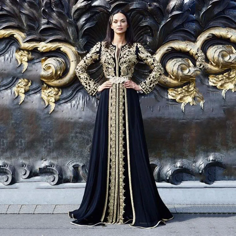 Женское длинное вечернее платье с аппликацией, сарафан из марокканского кафтана с золотистой аппликацией, арабское мусульманское платье для особых случаев, 2021