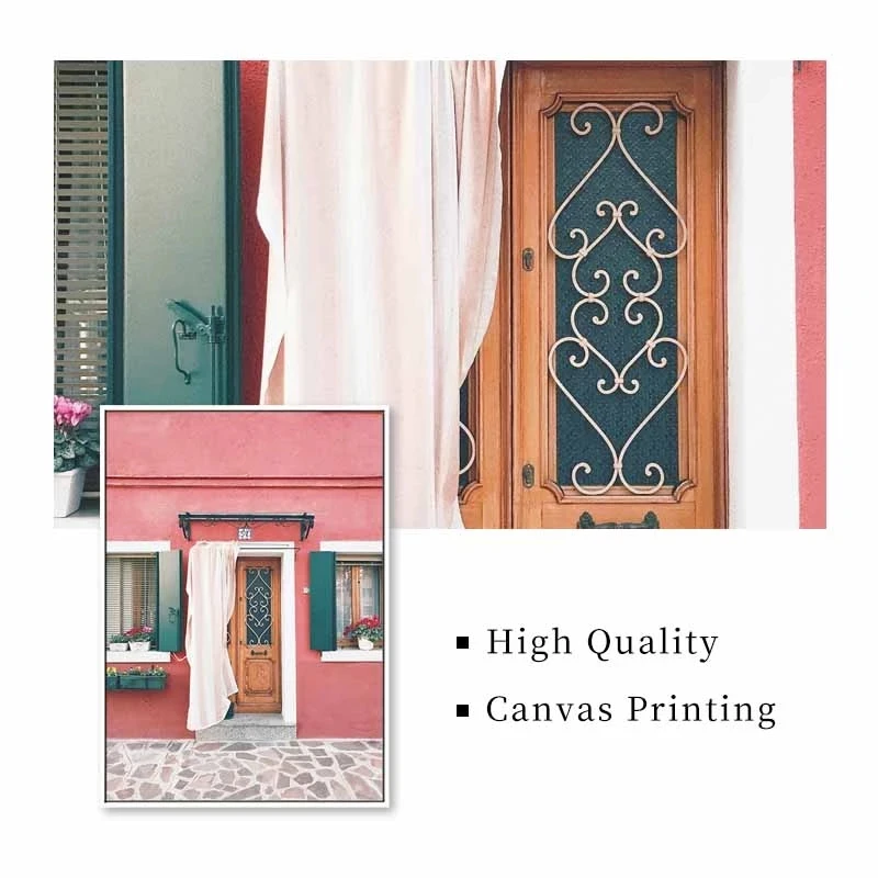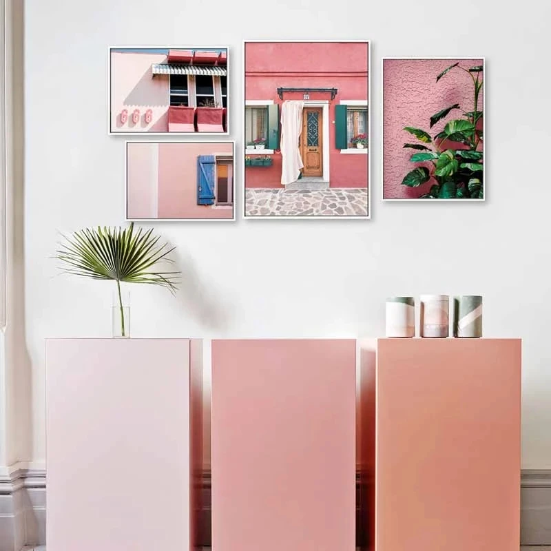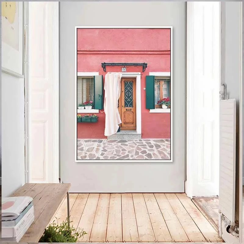 Настенная картина в скандинавском стиле, настенный постер розового цвета с изображением дома, старых ворот, окон, растений, в скандинавском стиле, для гостиной, домашний декор