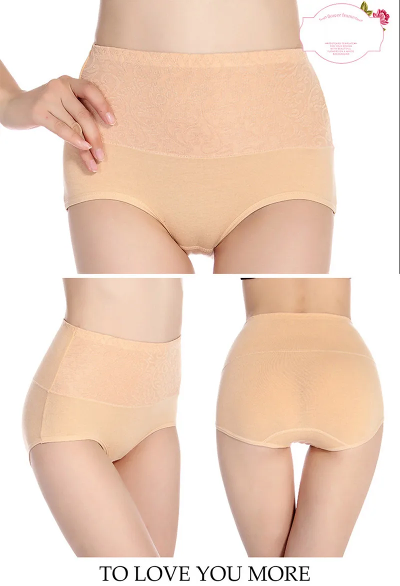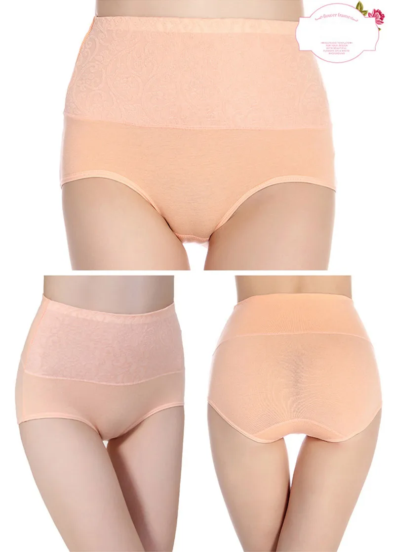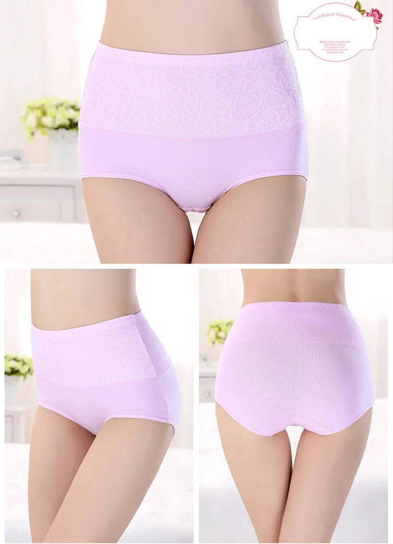 3 шт.лот женские трусики из хлопка с высокой талией, живот, Коррект...