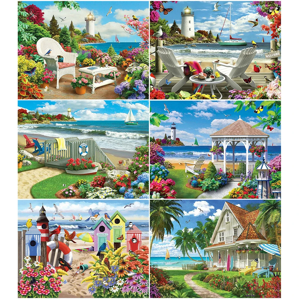 Алмазная живопись с ракушками, морскими звездами и морскими пейзажами