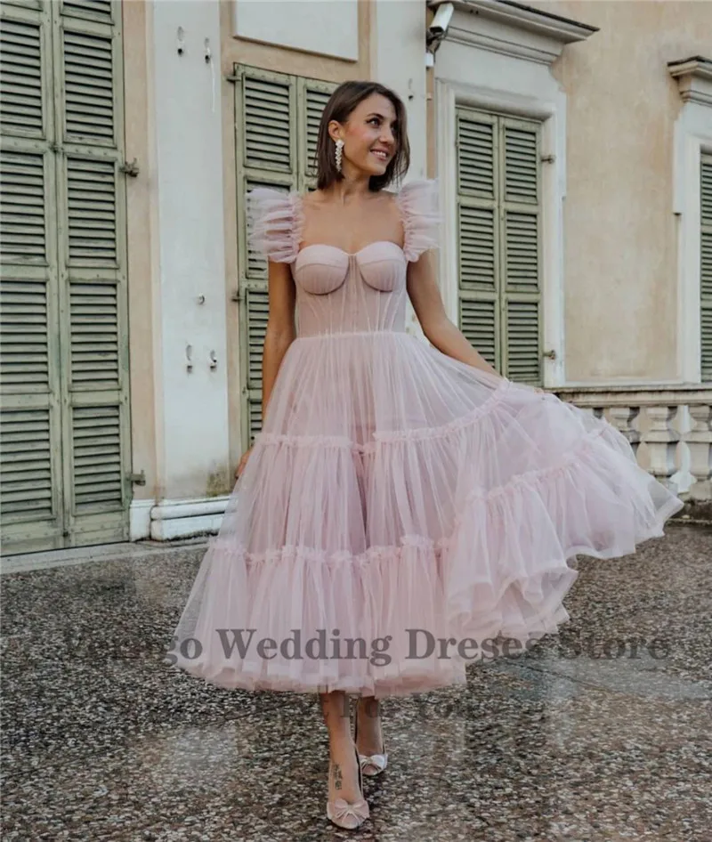 Винтажное женское платье для свадебной вечеринки Verngo 2021, платья для невесты до середины икры, со складками и рукавами