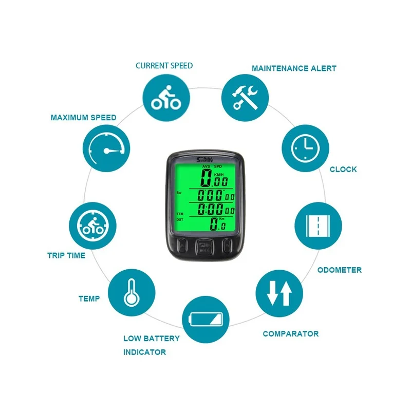 Sunding SD- 563A водонепроницаемый ЖК-Дисплей велосипедный компьютер одометр спидометр с зеленой подсветкой