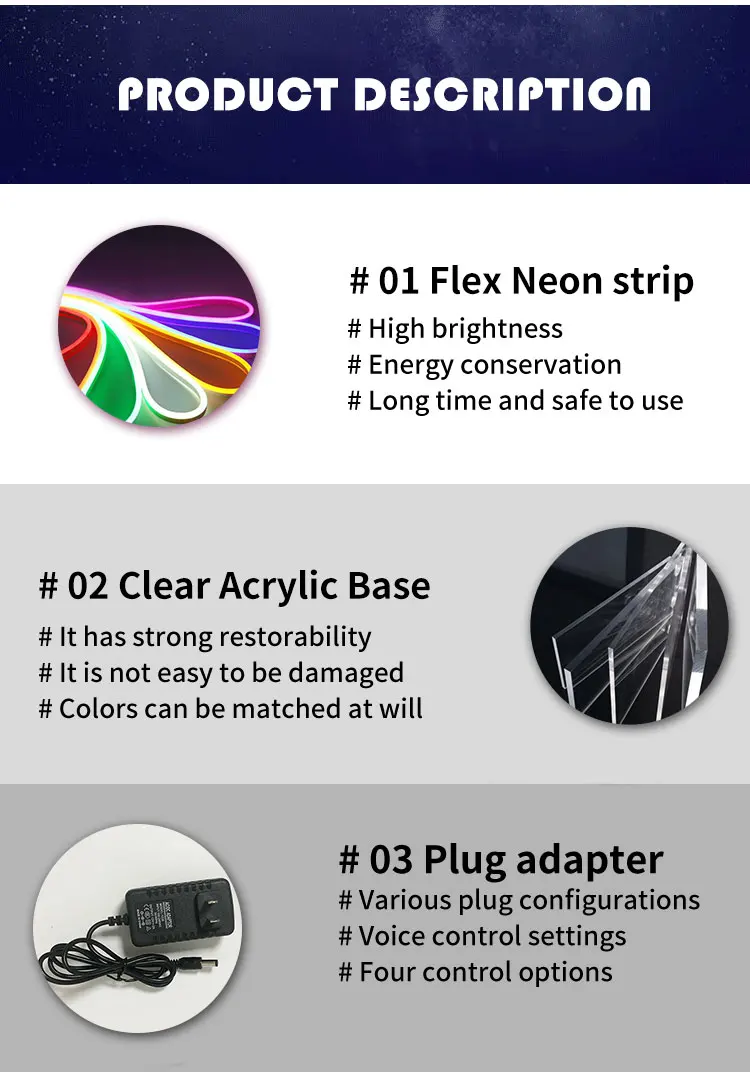 1. Мы можем изготовить все необходимые вам неоновые вывески.Просто предоставьте содержимое, цвет, размер или пришлите нам свои чертежи дизайна и подробные требования2. Настенный монтаж, Установка Подвески, простая и удобнаяИспользуйте проволоку, чтобы повесить ее сверху или прикрутить к стене3. Стандартная вилка для любой страныЕсть вилка для США, вилка для Великобритании, вилка для Австралии и вилка для ЕС4. Один год гарантии на светодиодную неоновую вывескуНаши светодиодные неоновые вывески изготовлены из лучшего качества, поэтому мы можем обещать, что гарантия на открытом воздухе составляет 6 месяцев, гарантия в помещении-1 год. В течение гарантийного срока, если возникнут проблемы с качеством, мы отремонтируем или даже заменим для вас бесплатно.5. Заводская ценаПотому что мы произведены в Фошань, поэтому, когда мы предоставляем вам продукты самого высокого качества, мы также можем предложить вам самую разумную цену.6. Короткое производство и доставкаМы имеем более чем 100 рабочих фабрики и долгосрочные отношения с транспортной компанией. Таким образом, мы можем обещать вам короткий срок производства и доставки. Обычно для производства требуется всего 4-5 рабочих дней, экспресс-доставка около 30-90 дней, коммерческая Экспресс-Доставка 5-7 дней