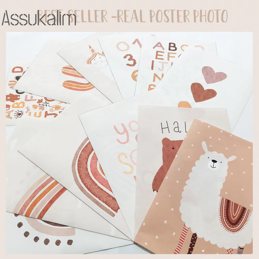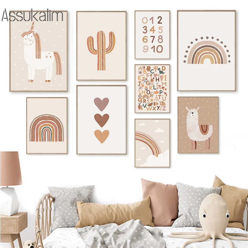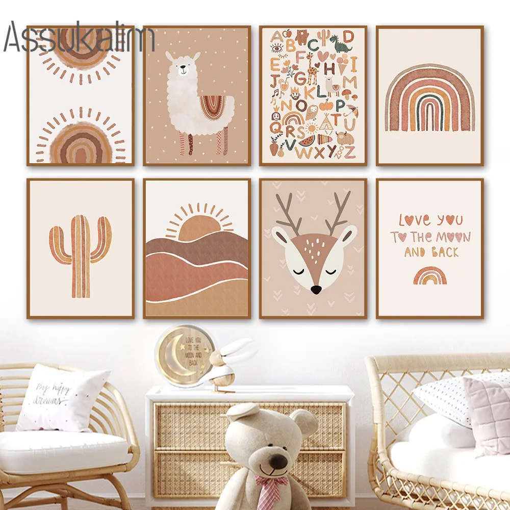 Постер Альпака солнце Радуга Картина на холсте детский Алфавит настенный художественный принт постеры в стиле бохо скандинавские настенные картины для декора детской комнаты