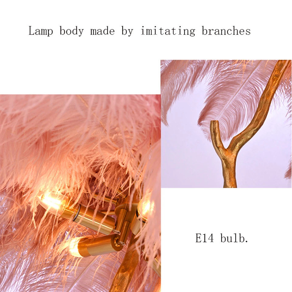 Современная роскошная Напольная Лампа из страусиного пера, медная, латунная, полимерная, для гостиной, спальни, стоячий светильник для виллы, освещение для гостиницы