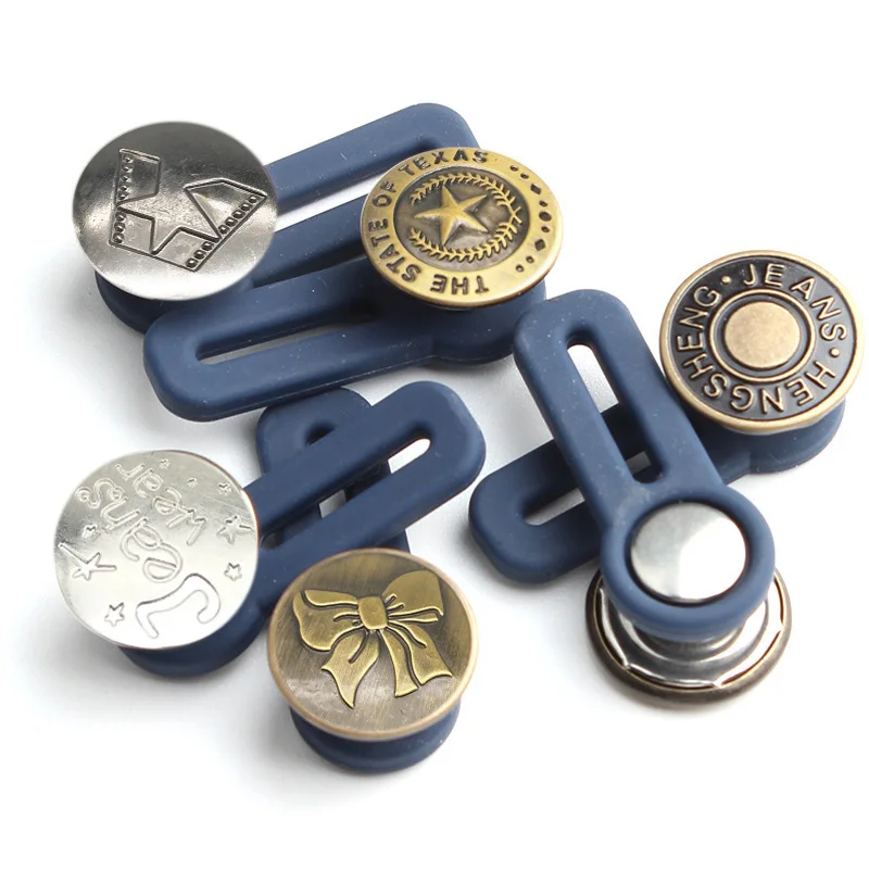 Описание: 100% Высокое Качество Название: джинсы Выдвижная Кнопка Размер: 3,5*1,7 см Материал: силикон металл использование: джинсы, повседневные брюки стиль: см. Изображение