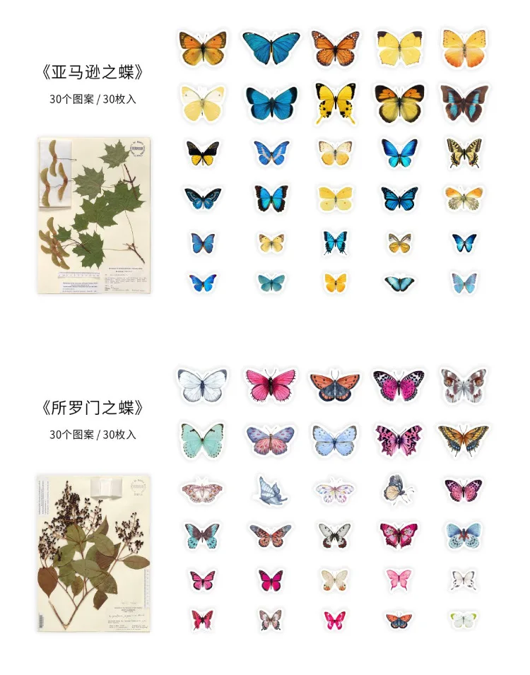 30 шт.лот, винтажные стикеры в виде бабочек, коллекция домашних жив...