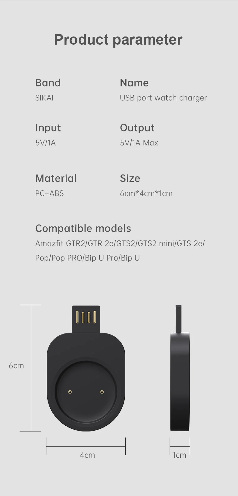 Адаптер для зарядного устройства Smartwatch, USB-кабель для зарядки, для Amazfit GTR 2 2e GTS 2 mini, умное зарядное устройство для Amazfit Bip U